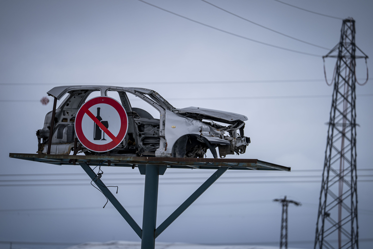 Erzurum’da yol kenarında sergilenen hurda araçlar trafikte farkındalık oluşturuyor