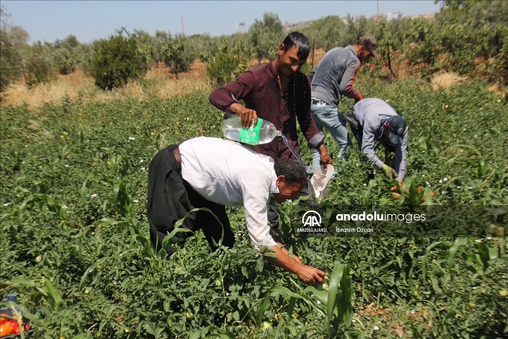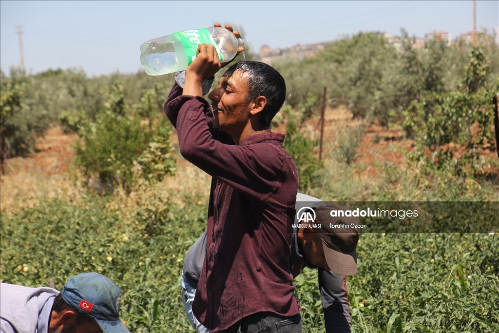 Çiftçiler ise günün erken saatlerinde tarlanın yolunu tutarak ürünlerini hasat ediyor, bunaltıcı sıcaklara karşı üzerlerine su döküyor ve öğlen saatlerinde ise dinlenmeye çekiliyor.