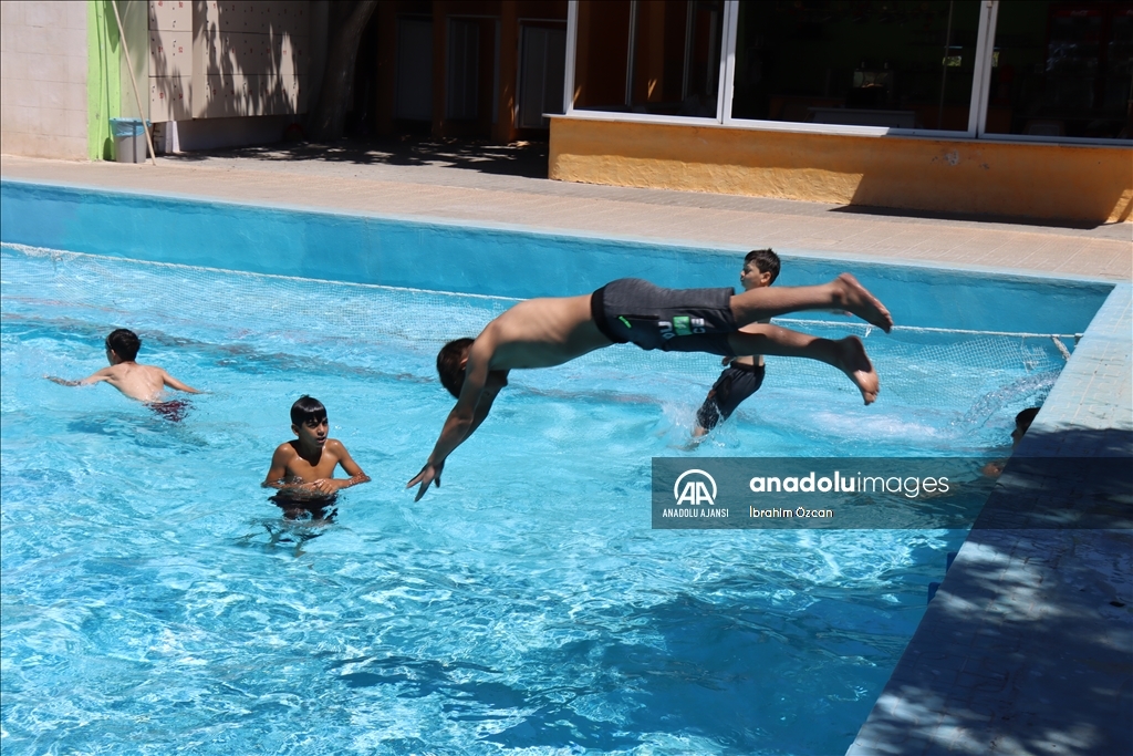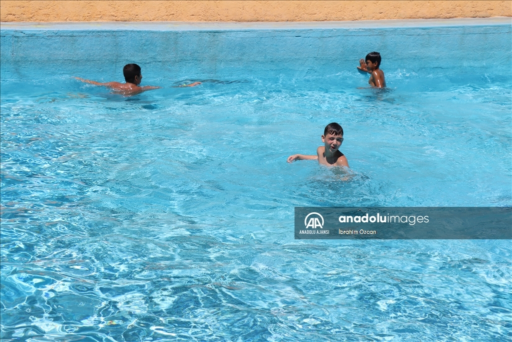 Kilis'te de havaların ısınmasıyla insanlar havuz ve gölgelik alanlarda sıcağa karşı korunmaya çalışıyor.