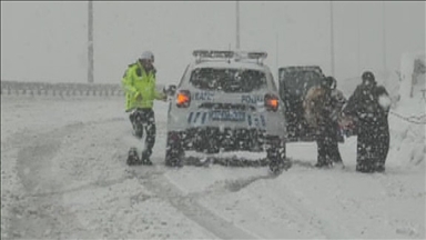 Hakkari'de yoğun kar nedeniyle yolda kalan 2 kadın ve 1 bebek, trafik ekiplerince gidecekleri yere ulaştırıldı.