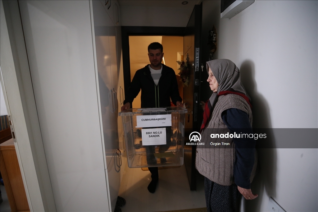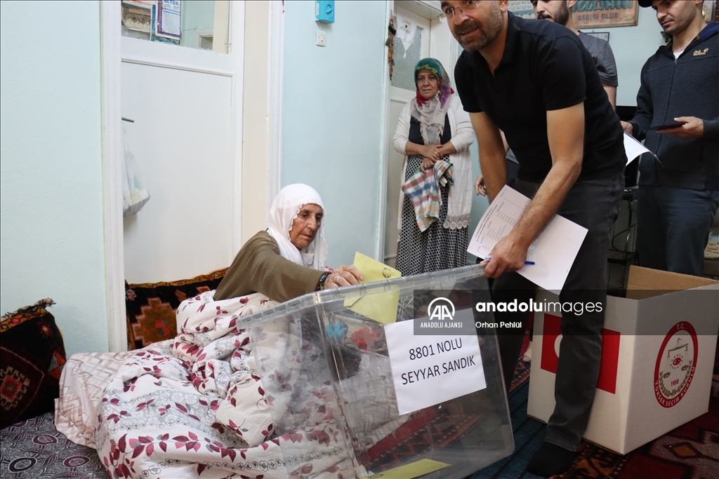 İl Seçim Kurulu görevlileri, hastalığı ya da engeli nedeniyle oy kullanmaya gidemeyen vatandaşların evine seyyar sandık götürdü.