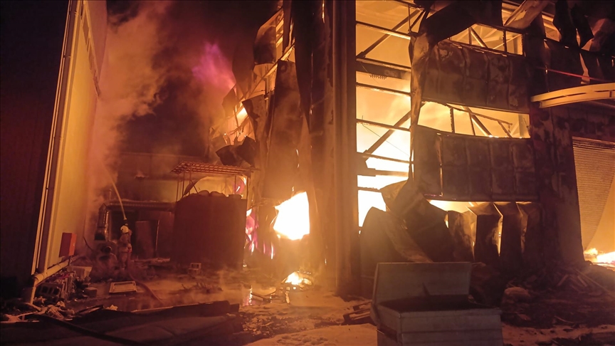 Ekiplerin müdahalesiyle söndürülen yangında depoda hasar oluştu.