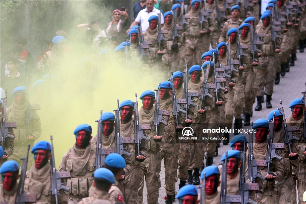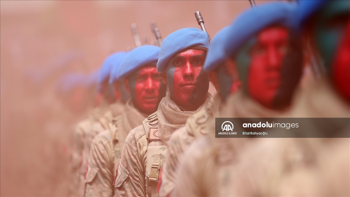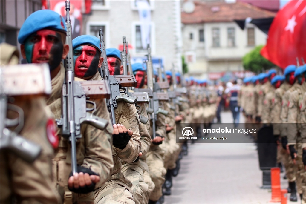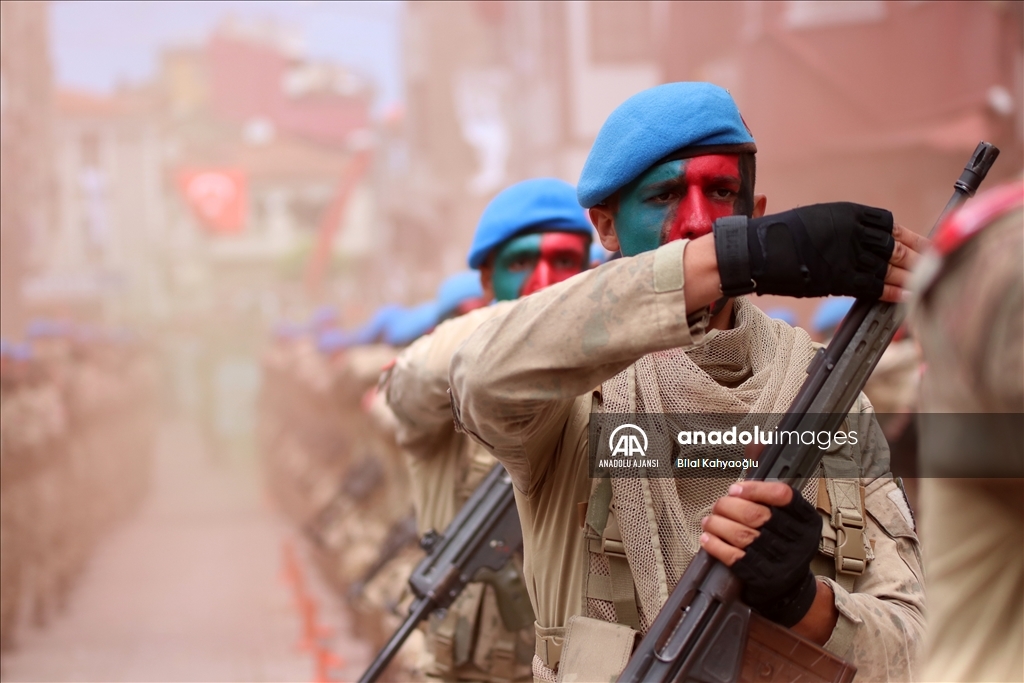 Komandoların yürüyüş sırasında yaptıkları gösteriyi vatandaşlar ilgiyle izledi.