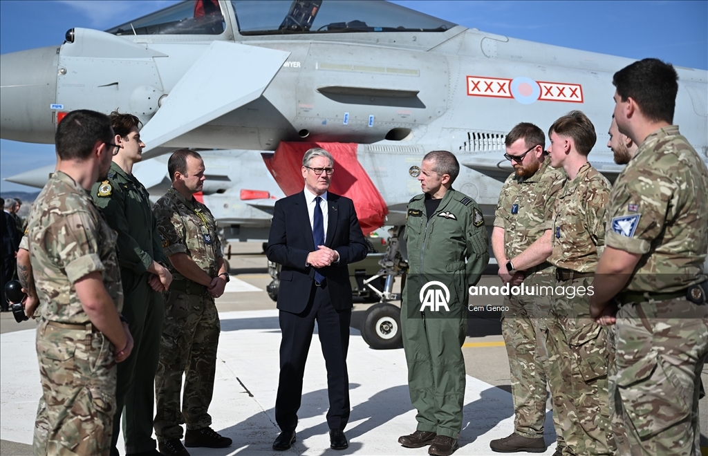 Eurofighter Typhoon uçaklarını inceledikten sonra pilotları ve teknik ekiple kısa süre sohbet eden Starmer'ın beraberinde İngiltere Savunma Bakanı John Healey ve İngiltere Hava Kuvvetleri Komutanı Orgeneral Harv Smyth de yer aldı.