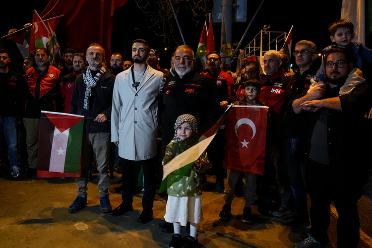 Grup adına açıklama yapan Genç İHH İstanbul Başkanı Muaz Talha Demirtaş, toplanma amaçlarının Gazze'de yaşananlara karşı insanlık onurunu savunmak olduğunu söyledi.