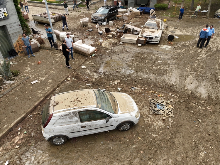 Dükkandaki suyun çekilmesiyle bazı dükkanların içlerinde yaklaşık 1,5 metrelik izler oluştu. Su basan dükkanların bulundığı cadde ise çamurla kaplandı.