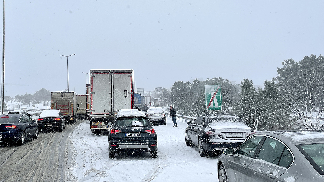 İstanbul'da toplu taşıma araçları ve otomobiller karlı yollarda kaldı