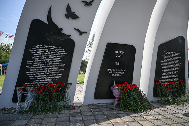 Öte yandan depreminin yıl dönümü nedeniyle Bayraklı ilçesindeki Deprem Anıtı ve Parkı'nda da anma etkinliği düzenlendi.