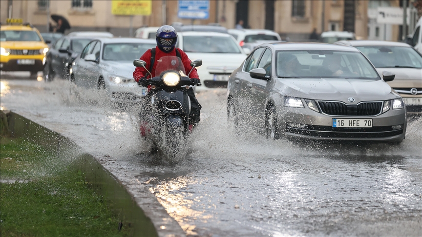 Sağanak nedeniyle yollarda oluşan su birikintileri, ana arterlerde trafikte aksamalara neden oldu.