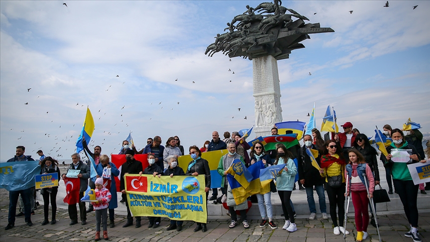 İzmir'de yaşayan Azerbaycanlı ve Kırımlı bir grup Türk de protestoya destek verdi.
