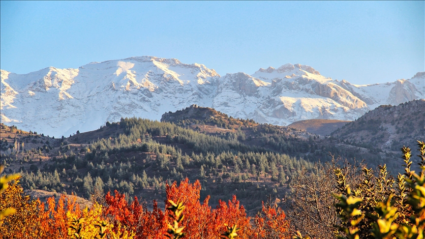 Toros kıvrım dağlarının bir parçası olan dağ, mevsimin ilk kar yağışıyla beyaza büründü, zirve çevresindeki sonbahar tonlarıyla da farklı bir güzellik oluşturdu.