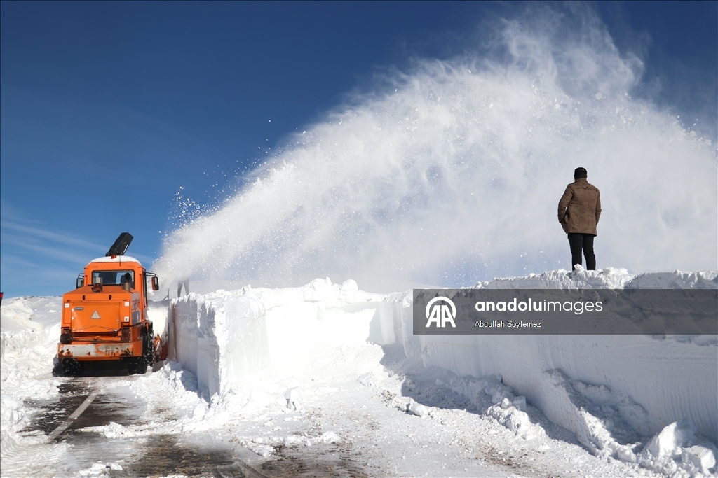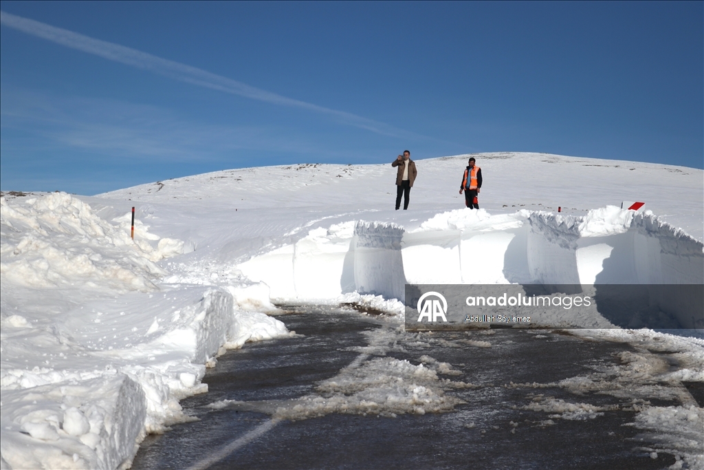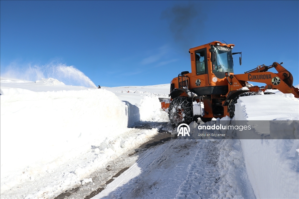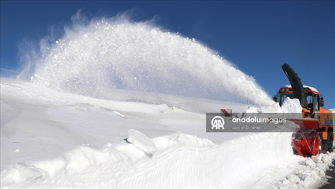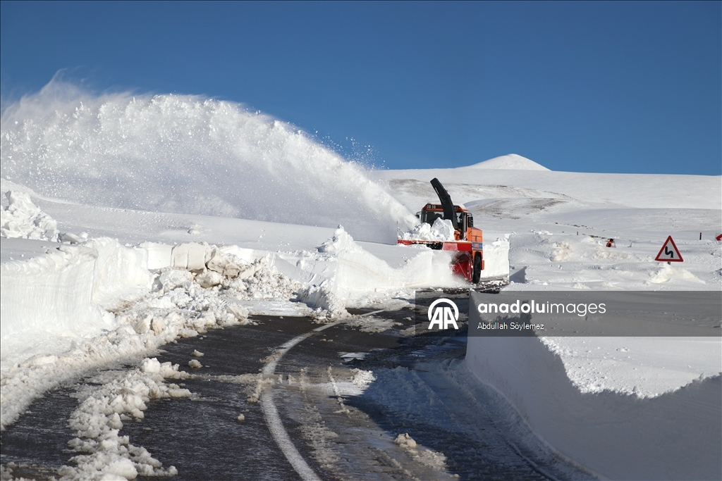 Ağrı'da Karayolları ekipleri, kar kalınlığının yer yer 2-3 metreyi aştığı Ağrı-Kağızman kara yolunda yoğun mesai yapıyor.