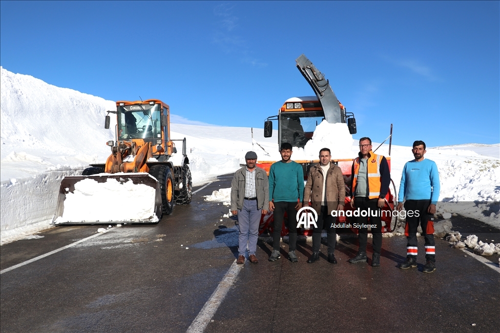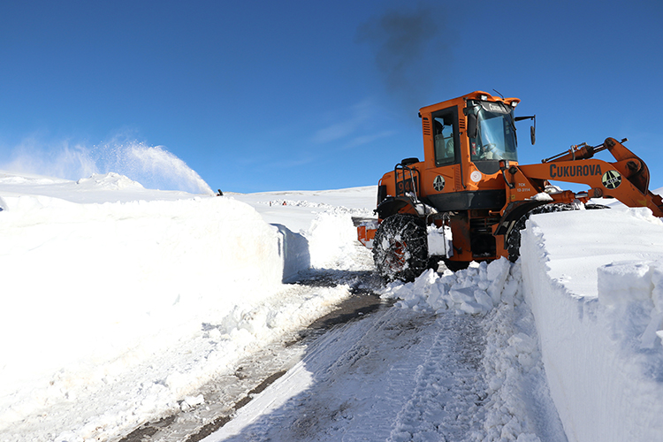 "Kar kaplanları", rotatif araç, kepçe ve greyderle kar kalınlığının yer yer 2-3 metreyi aştığı yolda 10 gündür gece gündüz demeden zorlu bir çalışma yapıyor.