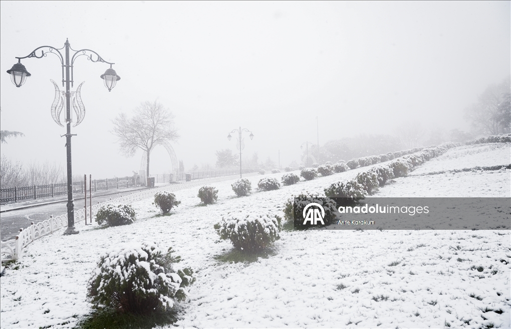 Kent merkezinde kar yağışıyla özellikle Atatürk ve Hasan Ali Yücel meydanları ile sahil dolgu alanı beyaza büründü.