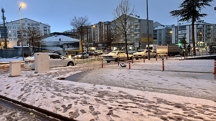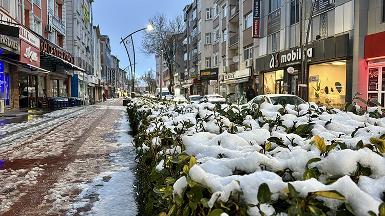 Hava sıcaklığının sıfırın altında 1 derece ölçüldüğü kentte, kar yağışının öğlen saatlerinde etkisini yitirmesi öngörülüyor.