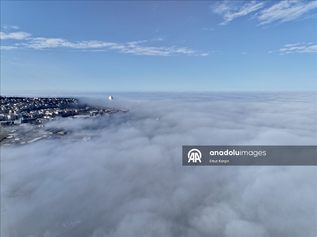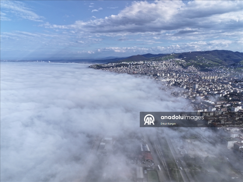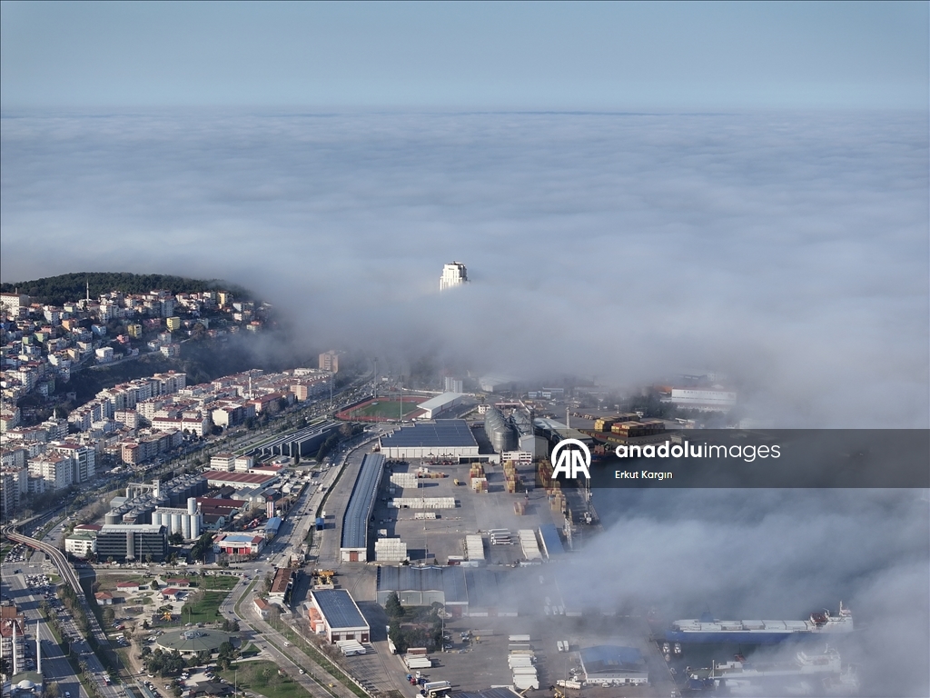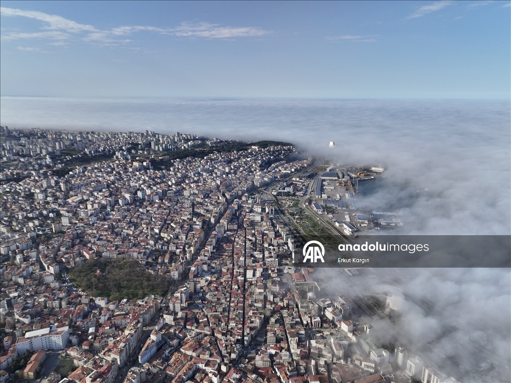 Samsun'da Karadeniz'in üzerini kaplayan "sis denizi" dronla kaydedildi.