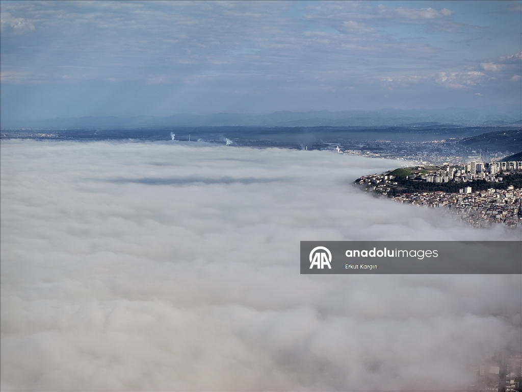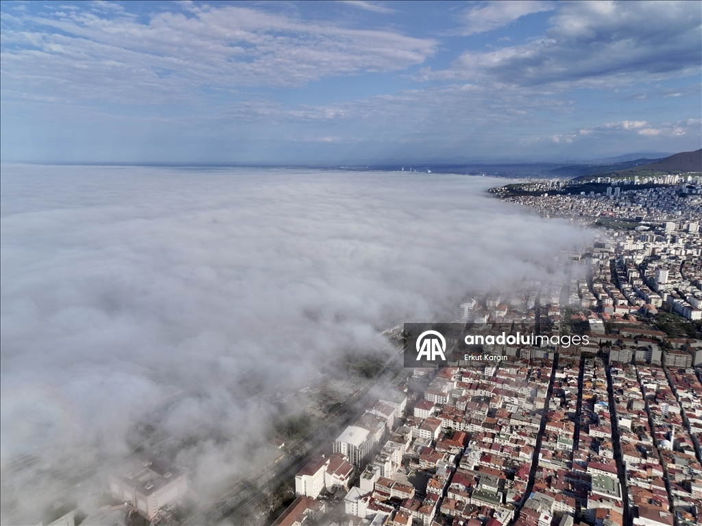 Kentte güzel görüntüler oluşturan "sis denizi" bölgeye ayrı bir güzellik kattı.