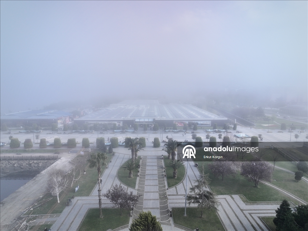 Samsun'un simgelerinden Tütün İskelesi ve İstiklal Meydanı sis içinde kaldı.