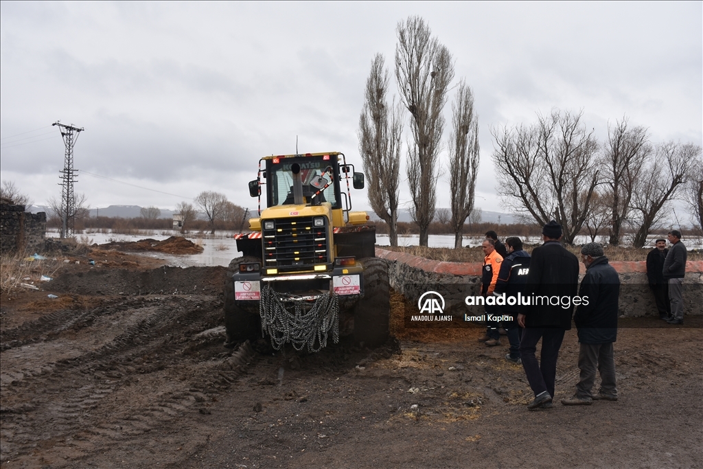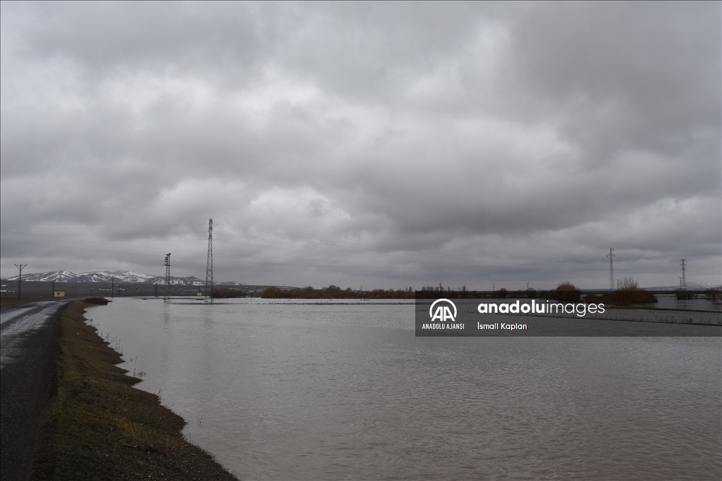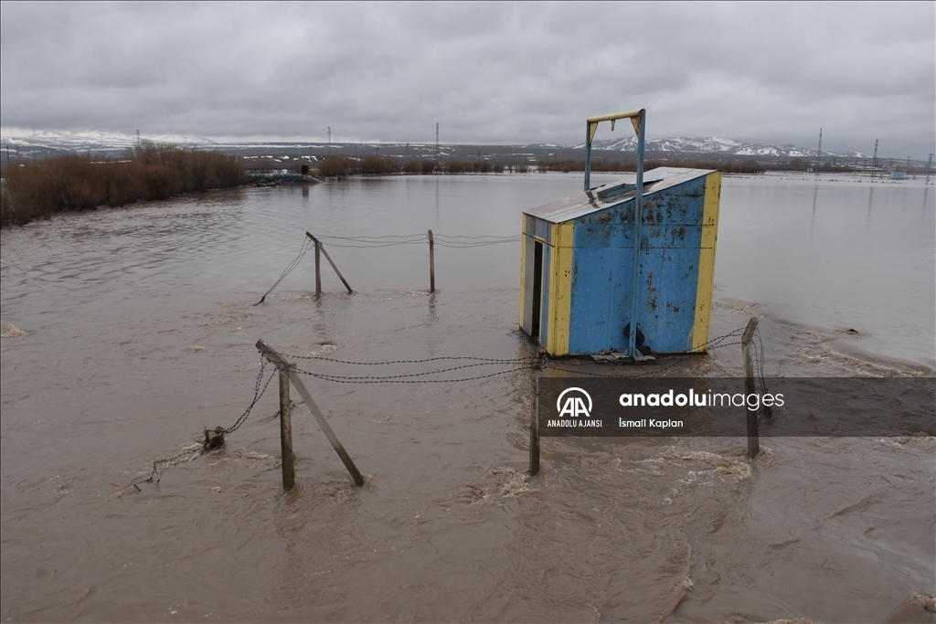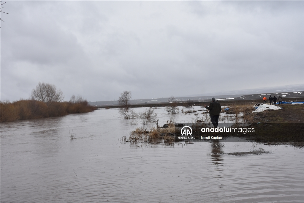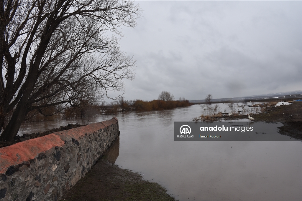 Kars'ta eriyen karlar ve sağanak nedeniyle Kars çayı taştı, bazı ev ve tarım arazilerini su bastı.