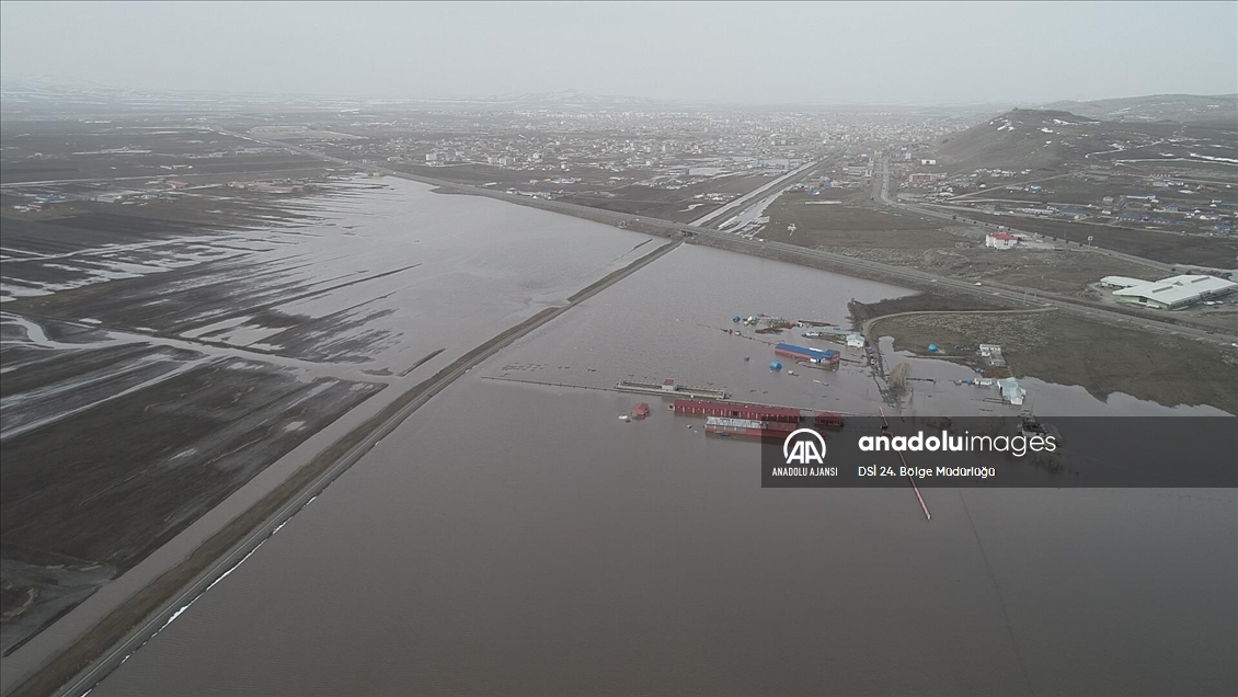Kars çayı taşınca bazı ev ve tarım arazilerini su bastı