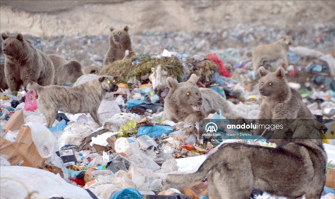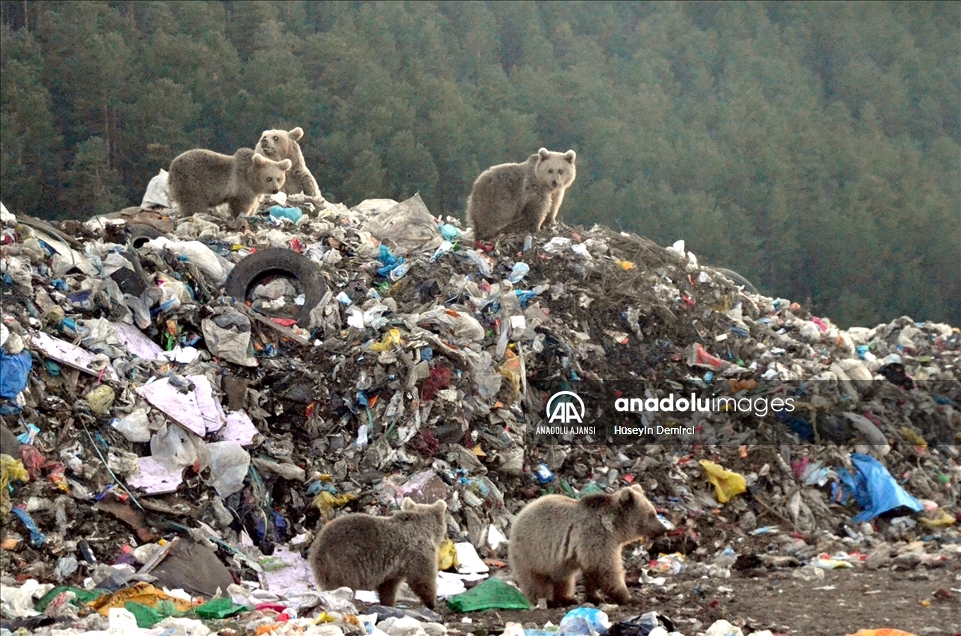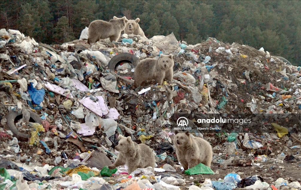 Orman içinden gelen ayılar, önce kara yolunu, ardından demir yolunu geçerek çöplüğe ulaşıyor. Burada buldukları yiyeceklerle beslenen ayılar tekrar ormanlık alana dönüyor.
