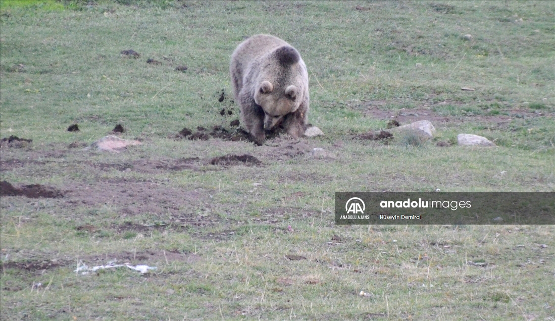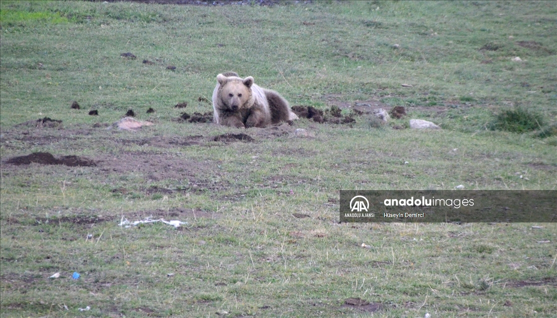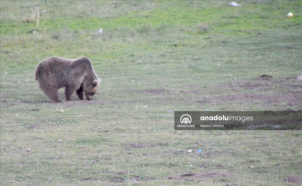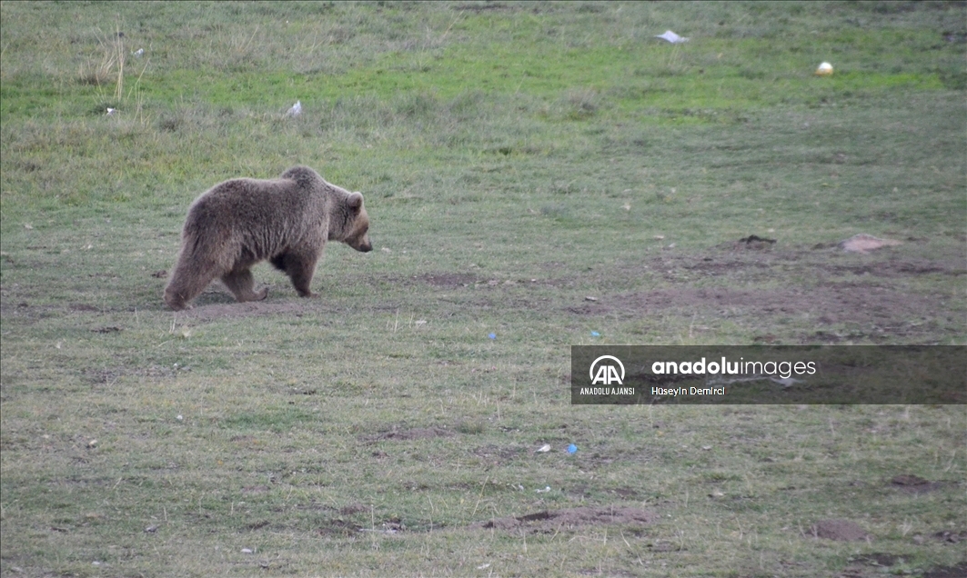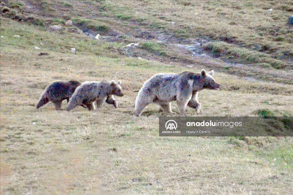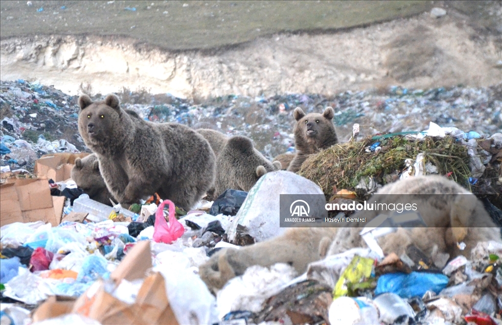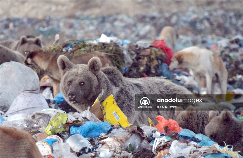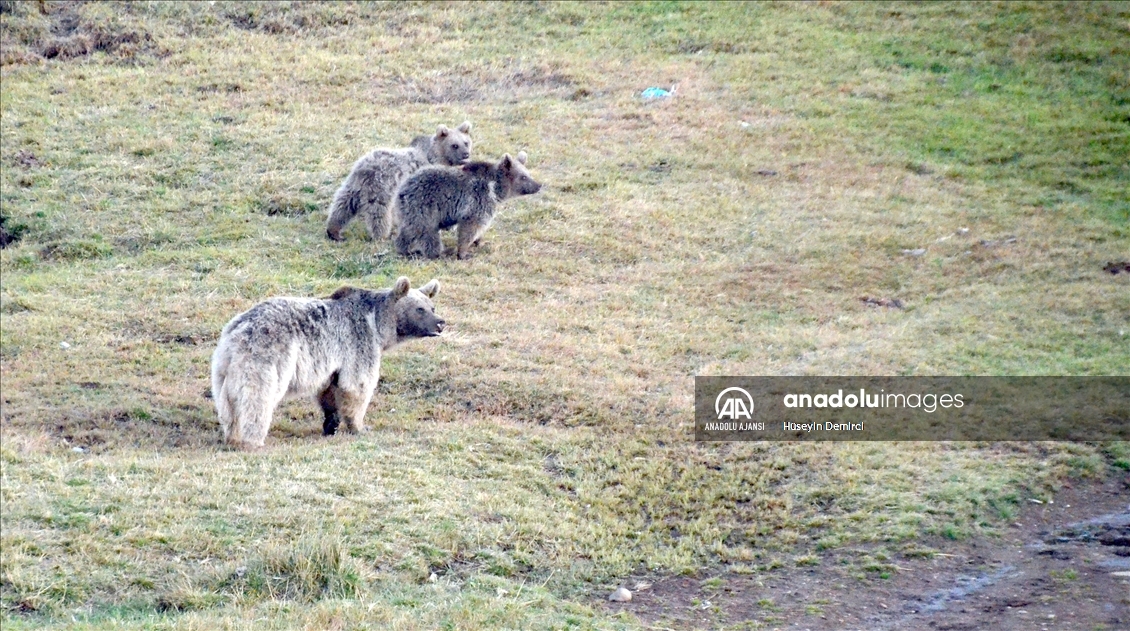 Dünyada göç eden bozayıların yaşadığı tek bölge olan Kars'ın Sarıkamış ilçesinde, beslenmek için çöplüğe giden bozayı ailesi görüntülere yansıdı.