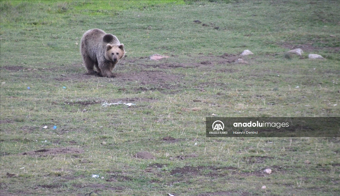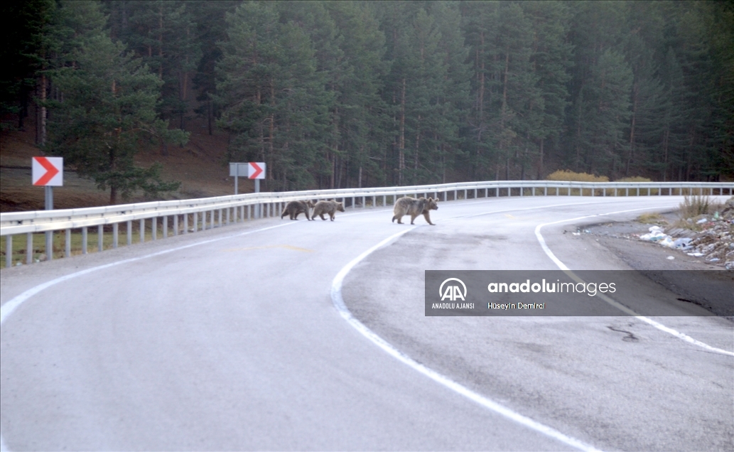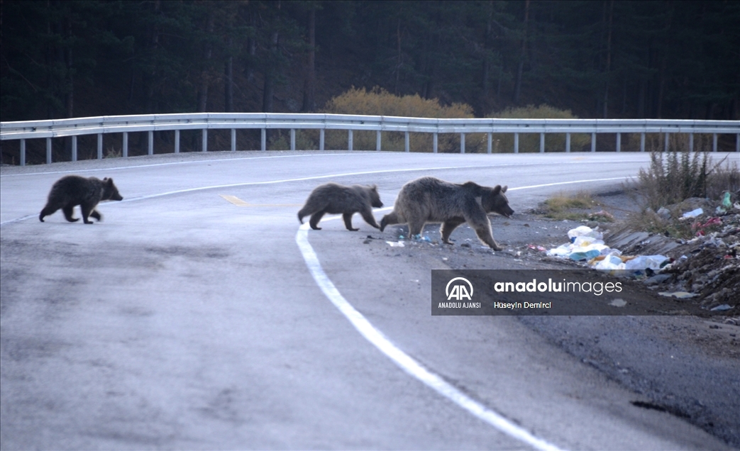 Yiyecek bulabilmek için ilçe merkezine 5 kilometre uzaklıkta bulunan Acısu mevkisindeki şehir çöplüğüne giden bozayılar, yavruları ile birlikte tehlikeli bir yolculuk yapıyor.