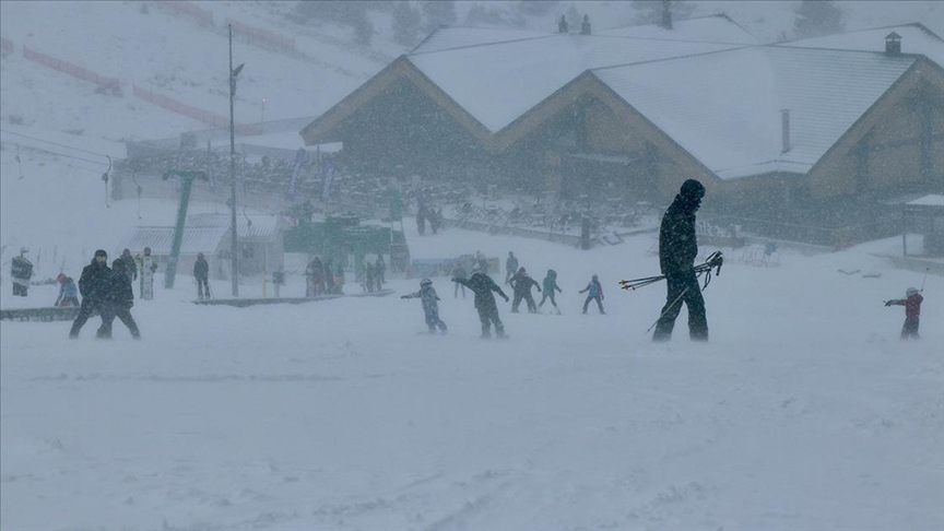 Kayak merkezinde gece saatlerinde başlayan kar yağışı, aralıklarla sürüyor.