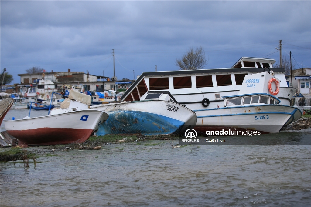 Balıkçı Erdinç Abay, gazetecilere yaptığı açıklamada, "Teknem burada bağlıydı ipleri kestim tekneyi kurtarmak için. Keserek açtım tekneyi buradan. İlk geldiğinde çok sert geldi, yoğundu." dedi.