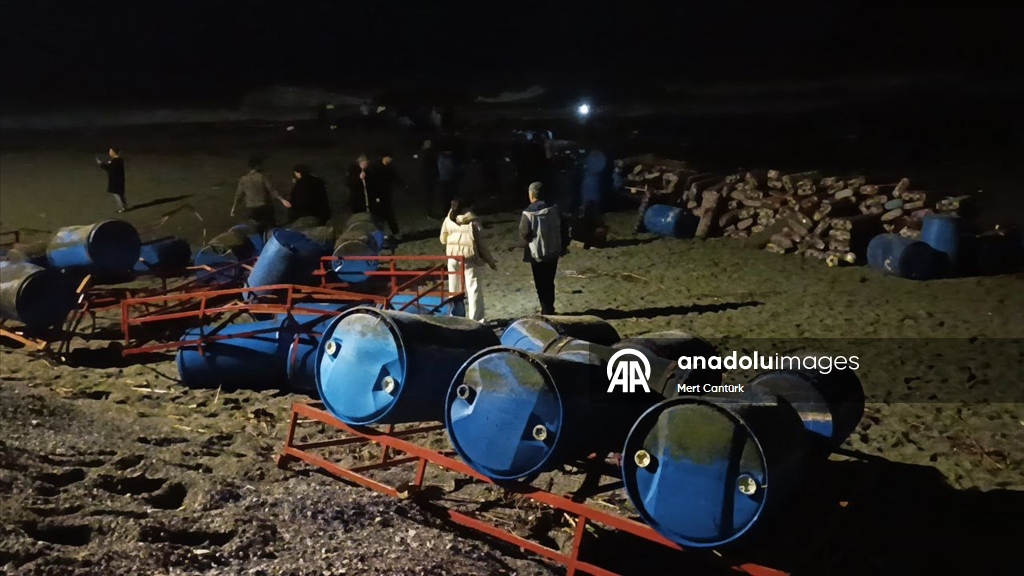 Denize ulaşan çardaklar, işletme sahipleri tarafından sudan çıkarılarak araçlara yüklendi.