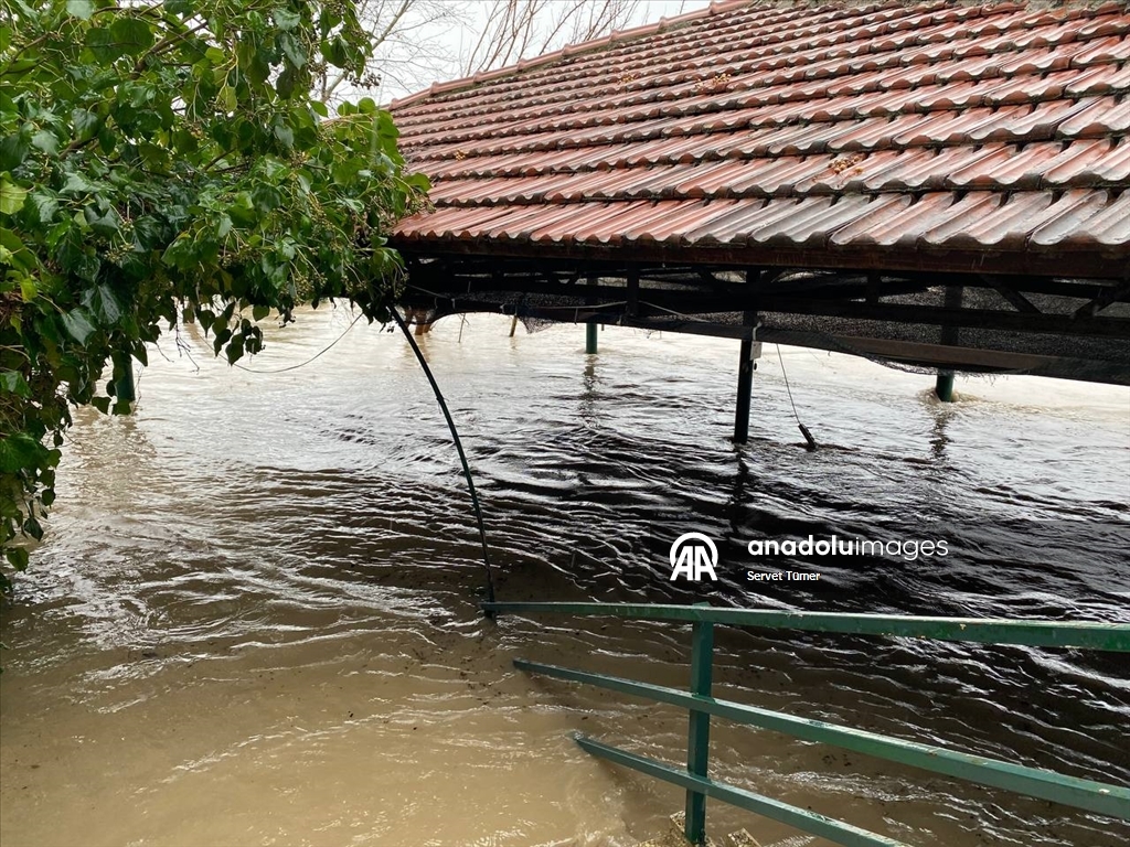 Sağanak ve eriyen karın etkisiyle ilçe mezarlığı, bazı evler ve yollar su altında kaldı.