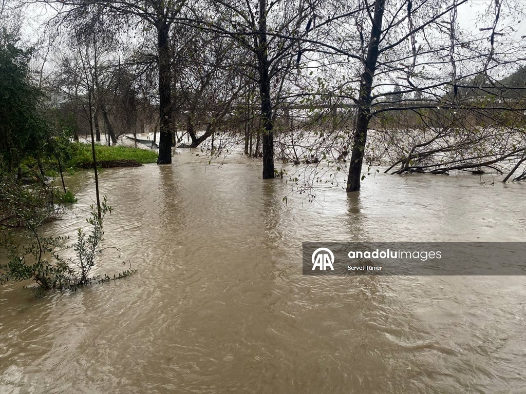 Serik ilçesinde yağışlar nedeniyle debisi yükselen Köprüçay Irmağı taştı, ırmak çevresindeki iş yerleri ile tarım arazileri sular altında kaldı.