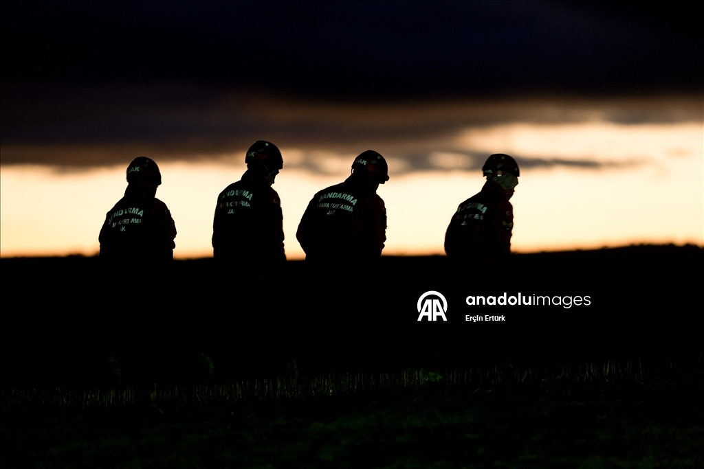 Uçağın düştüğü alanı güvenlik çemberine alan jandarma ekipleri, sivillerin bölgeye geçişine izin vermiyor.