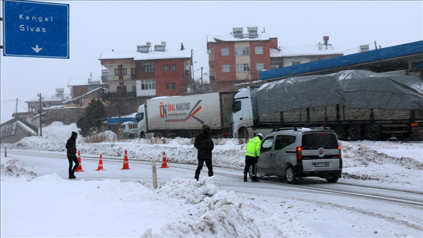 Yoğun kar nedeniyle kapatılan Malatya-Sivas kara yolunda ulaşım kontrollü sağlanıyor.