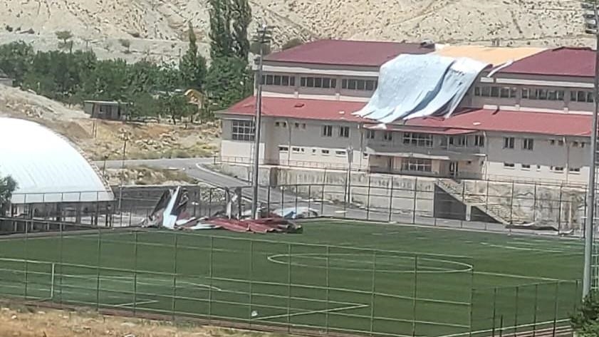 İlçede etkili olan kuvvetli rüzgar, İlçe Gençlik ve Spor Müdürlüğü Spor Salonu'nun çatısının bir bölümünü yerinden sökerek çim sahaya savurdu.