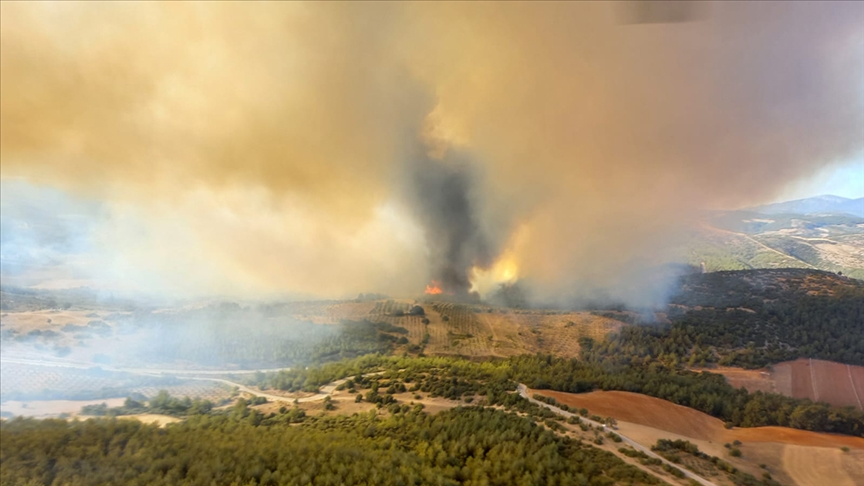 Söndürme çalışmalarına halen 10 helikopter, 8 uçak, 40 arazöz, 8 dozerin yanın sıra Manisa Büyükşehir Belediyesi itfaiye ekipleri, jandarma ve emniyetin TOMA araçları da katılıyor.