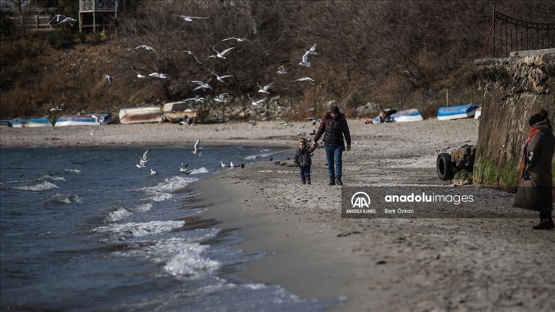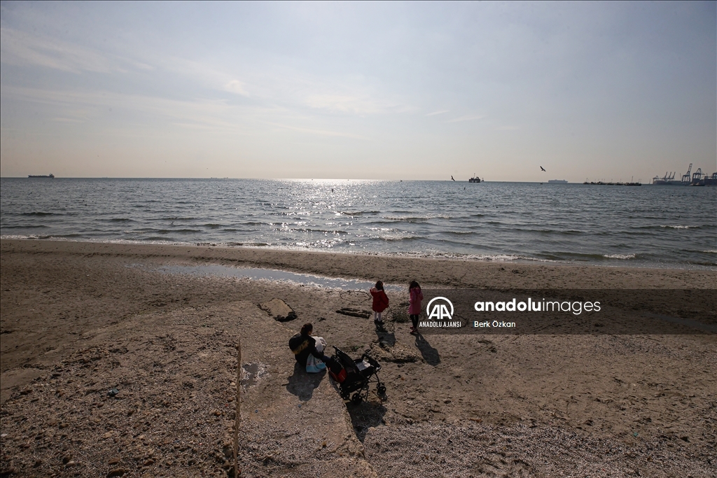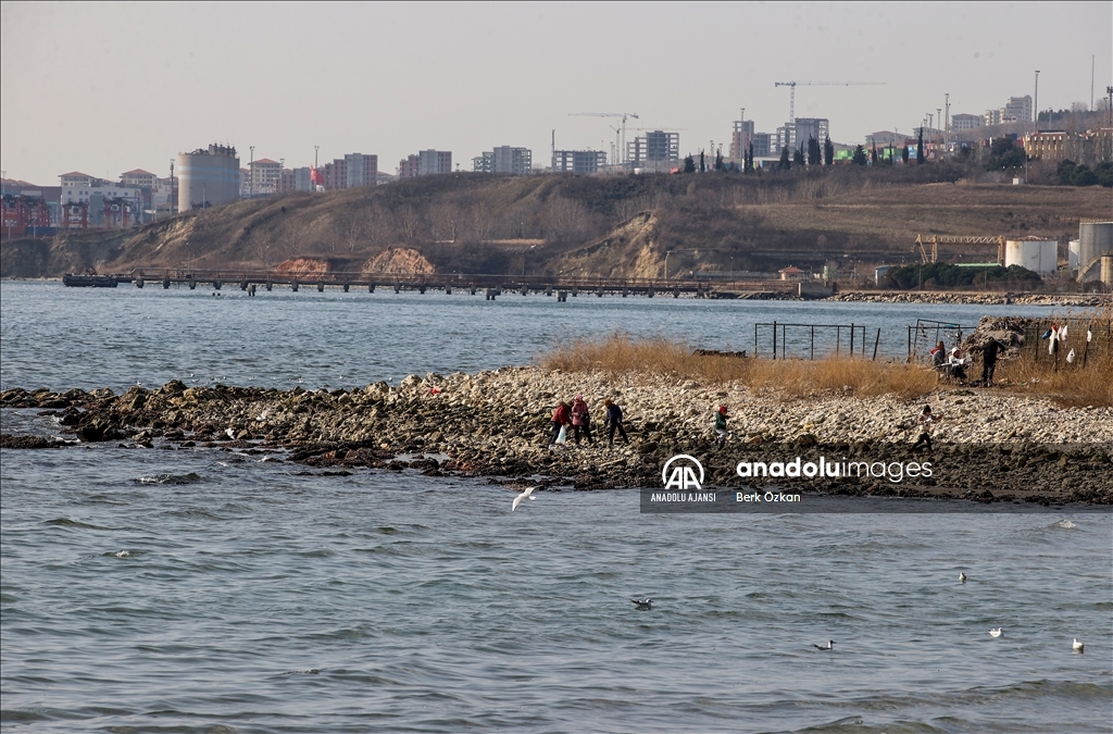 Avcılar Ambarlı Sahili'nde küçük kumsal olarak bilinen bölgede deniz suyu seviyesinde değişiklik meydana geldi. Azalan su nedeniyle daha önce görülmeyen kayalıklar ortaya çıktı.