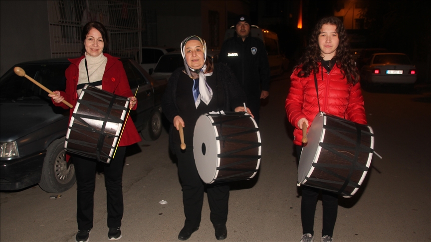 Ramazanın ilk gecesinde ellerine davullarını alan kadınlar, mahalleri gezerek vatandaşları sahura maniler eşliğinde uyandırdı.