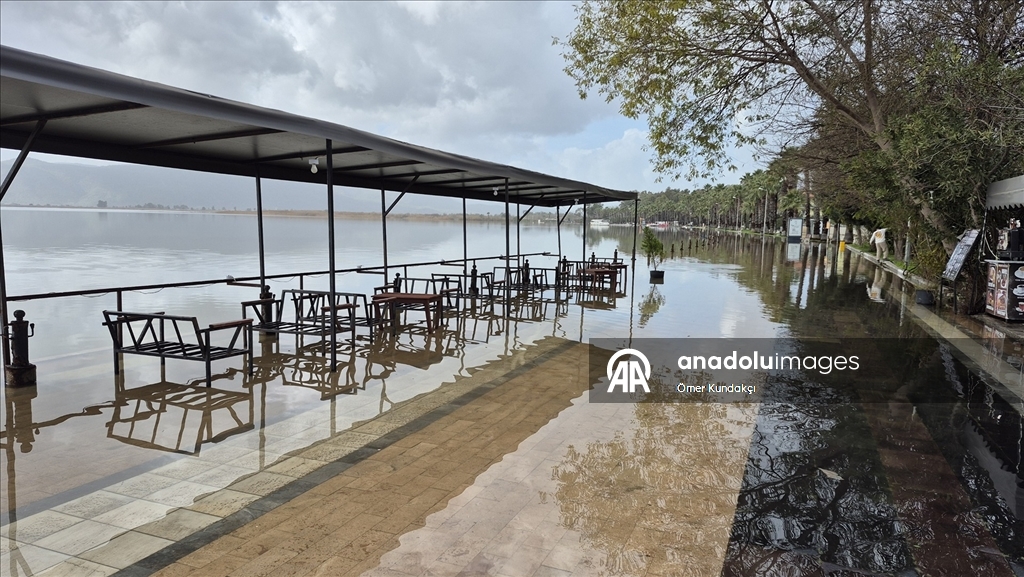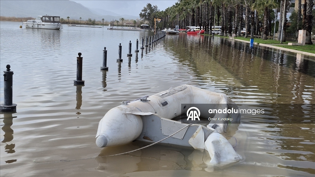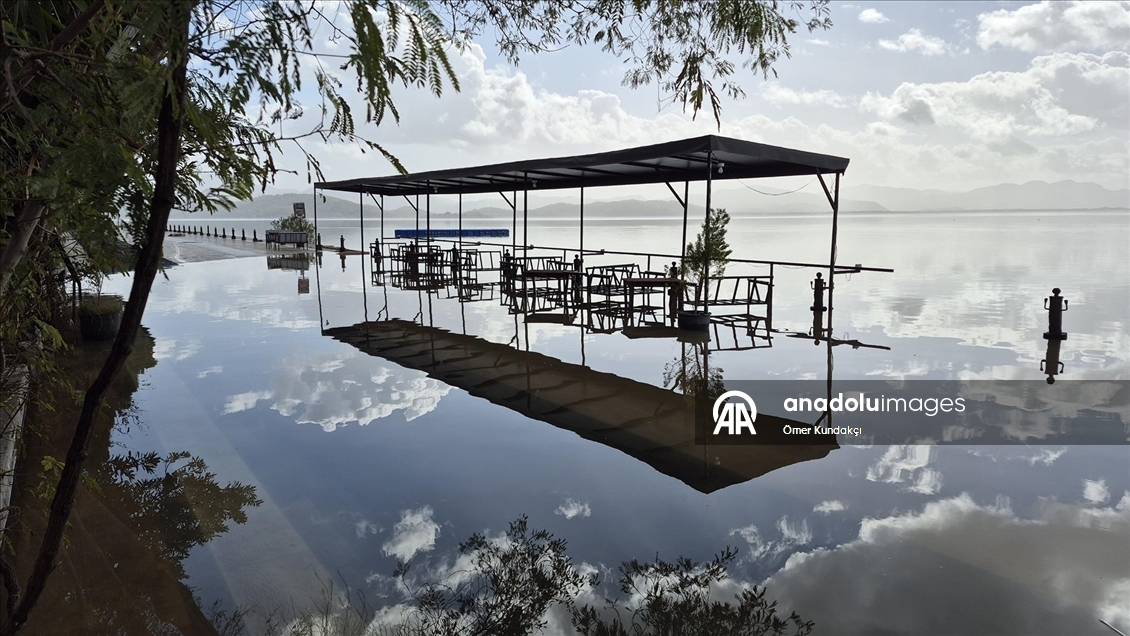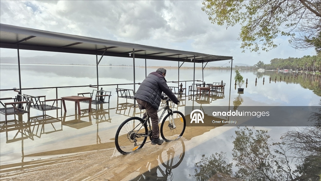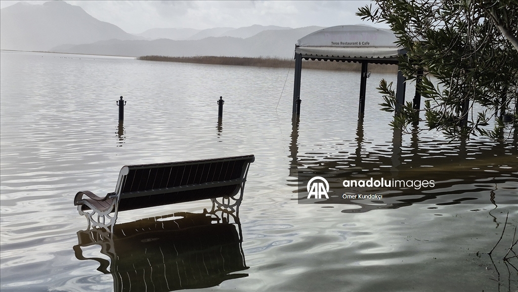Muğla'nın Köyceğiz ilçesinde, yağışların ardından Köyceğiz Gölü'nün taşması sonucu ev ve iş yerlerini su bastı.