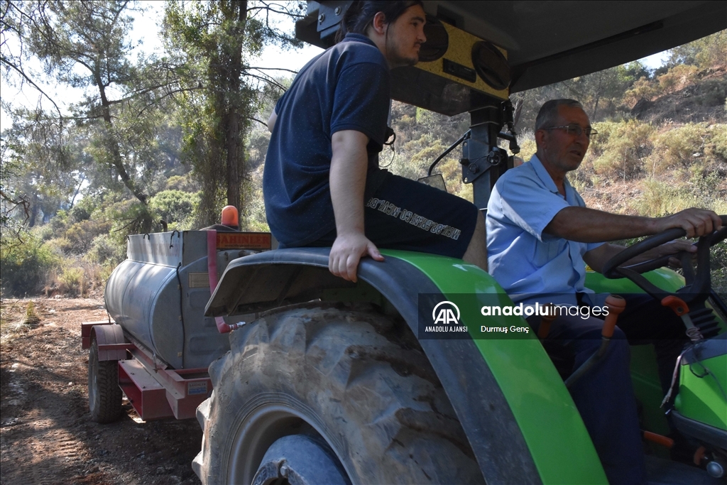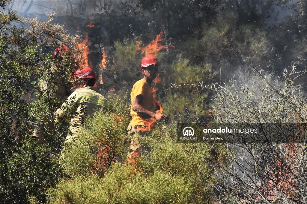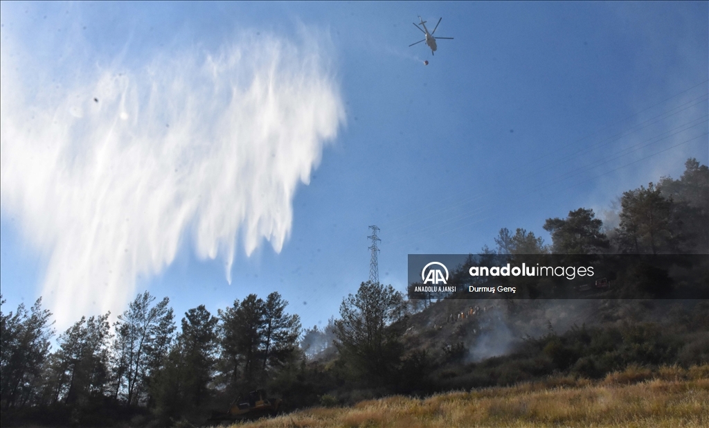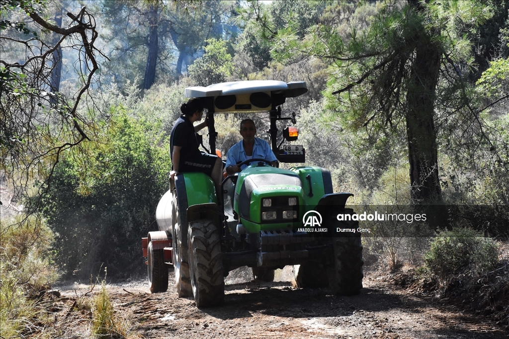 Bölgede 2 uçak, 5 helikopter, 20'ye yakın arazöz, 150 orman işçisi ve itfaiye ekipleri ile söndürme çalışmaları sürdürüldü. Mahalle sakinleri de traktörlerine bağladıkları tankerlerle söndürme çalışmalarına destek oldu.