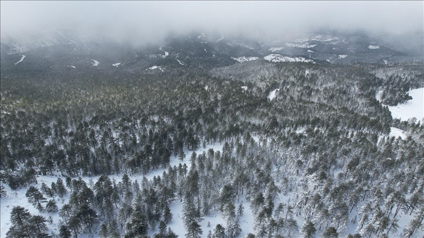 Beyaza bürünen bölge, drone ile havadan da görüntülendi.