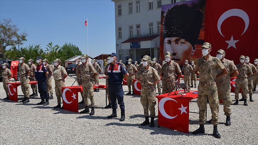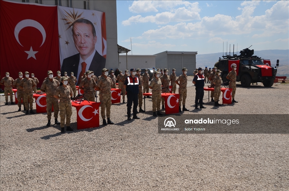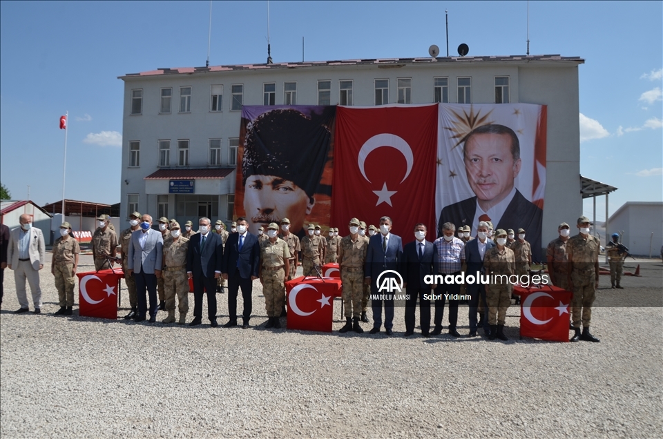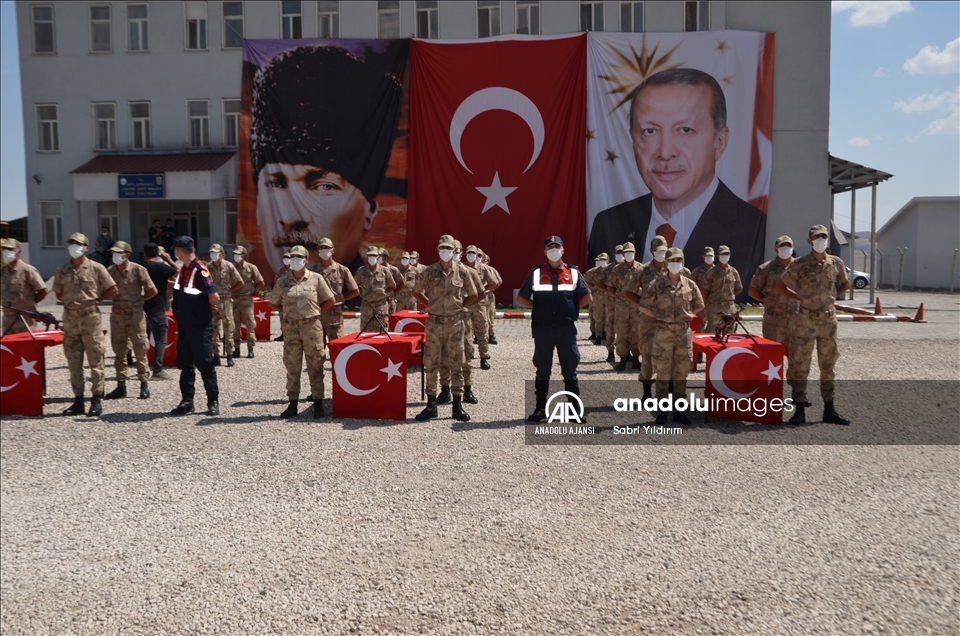 Varto Asayiş Komando Bölük Komutanlığı bahçesinde saygı duruşu ve İstiklal Marşı'nın okunmasıyla başlayan törende güvenlik korucuları silah başında yemin etti.
