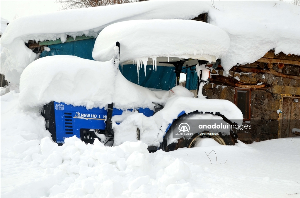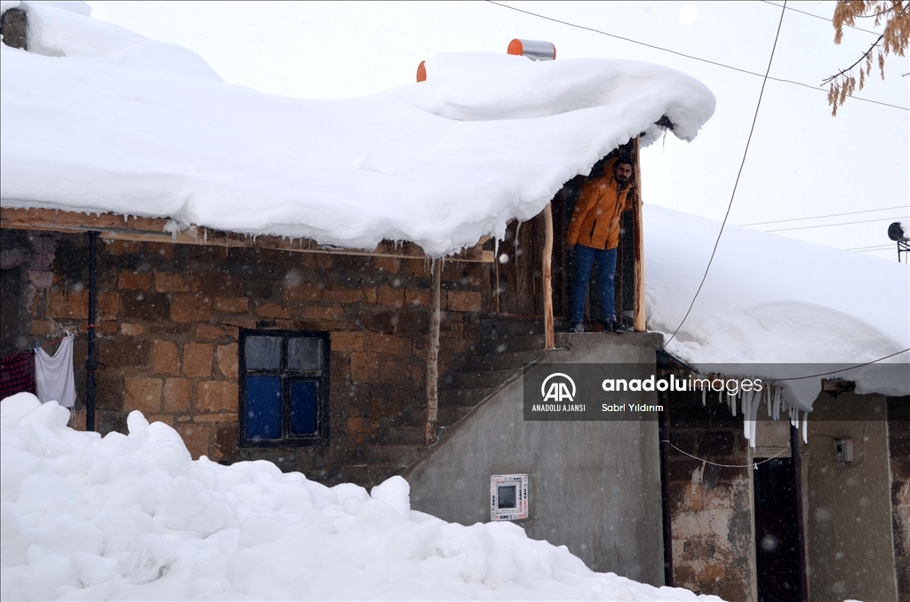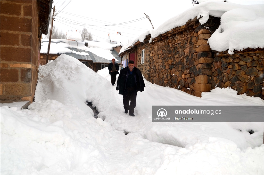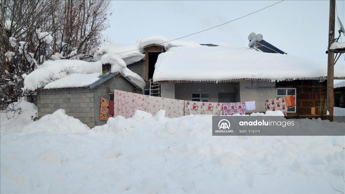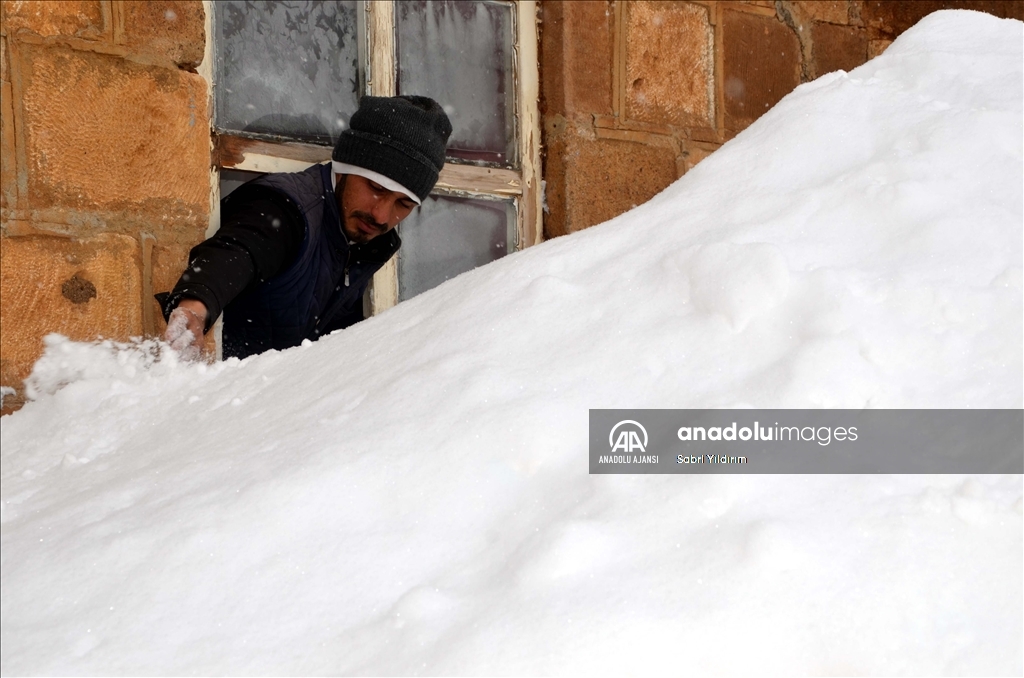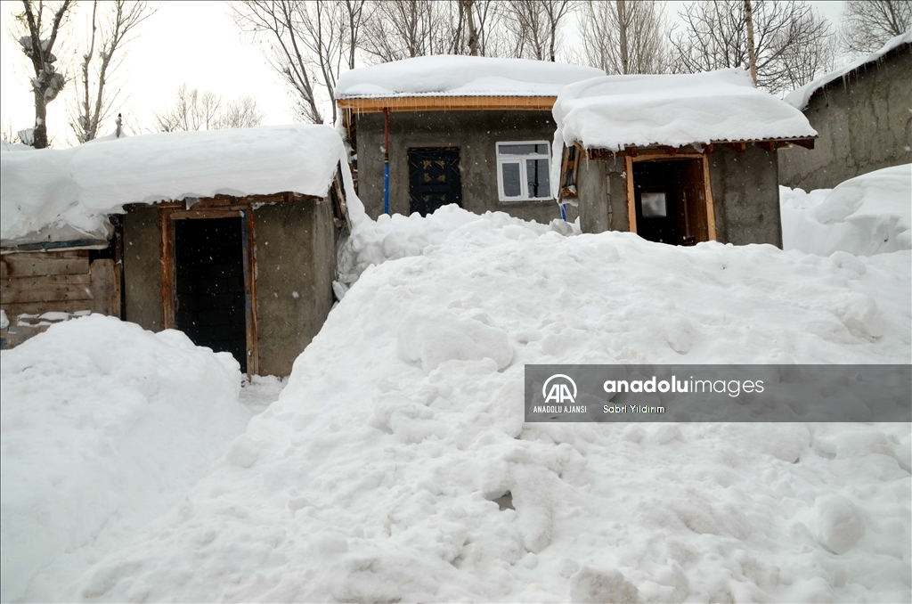 Muş'ta yüksek kesimlerdeki köylerde etkili olan olumsuz hava nedeniyle bazı evler kar birikintilerinin altında kaldı.