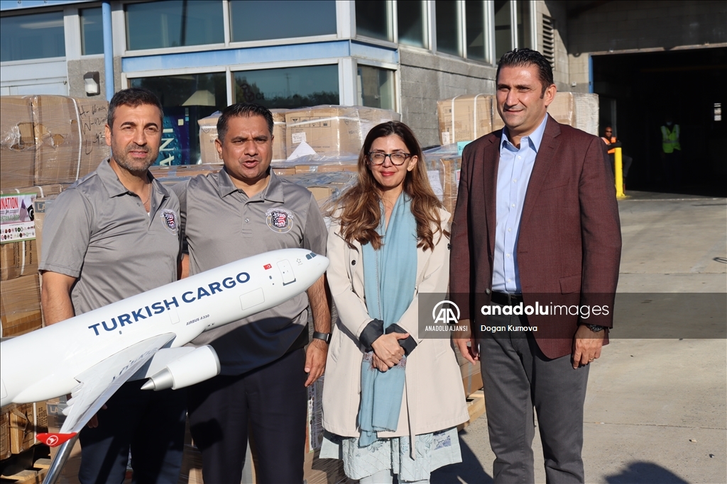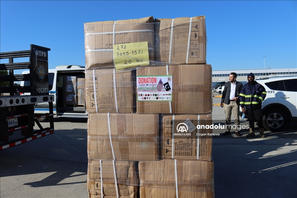 Dernek üyeleri tarafından, ağustos ayında Pakistan'ı vuran selden etkilenen insanlar için toplanan giysi ve temizlik malzemeleri, New York John F. Kennedy (JFK) Uluslararası Havalimanı'ndaki THY kargo yetkililerine teslim edildi.