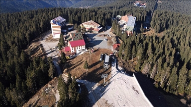 Bunu fırsat bilen tatilciler, çam ağaçlarıyla kaplı ormanlık alanda kayak yaptı, kızakla kaydı.