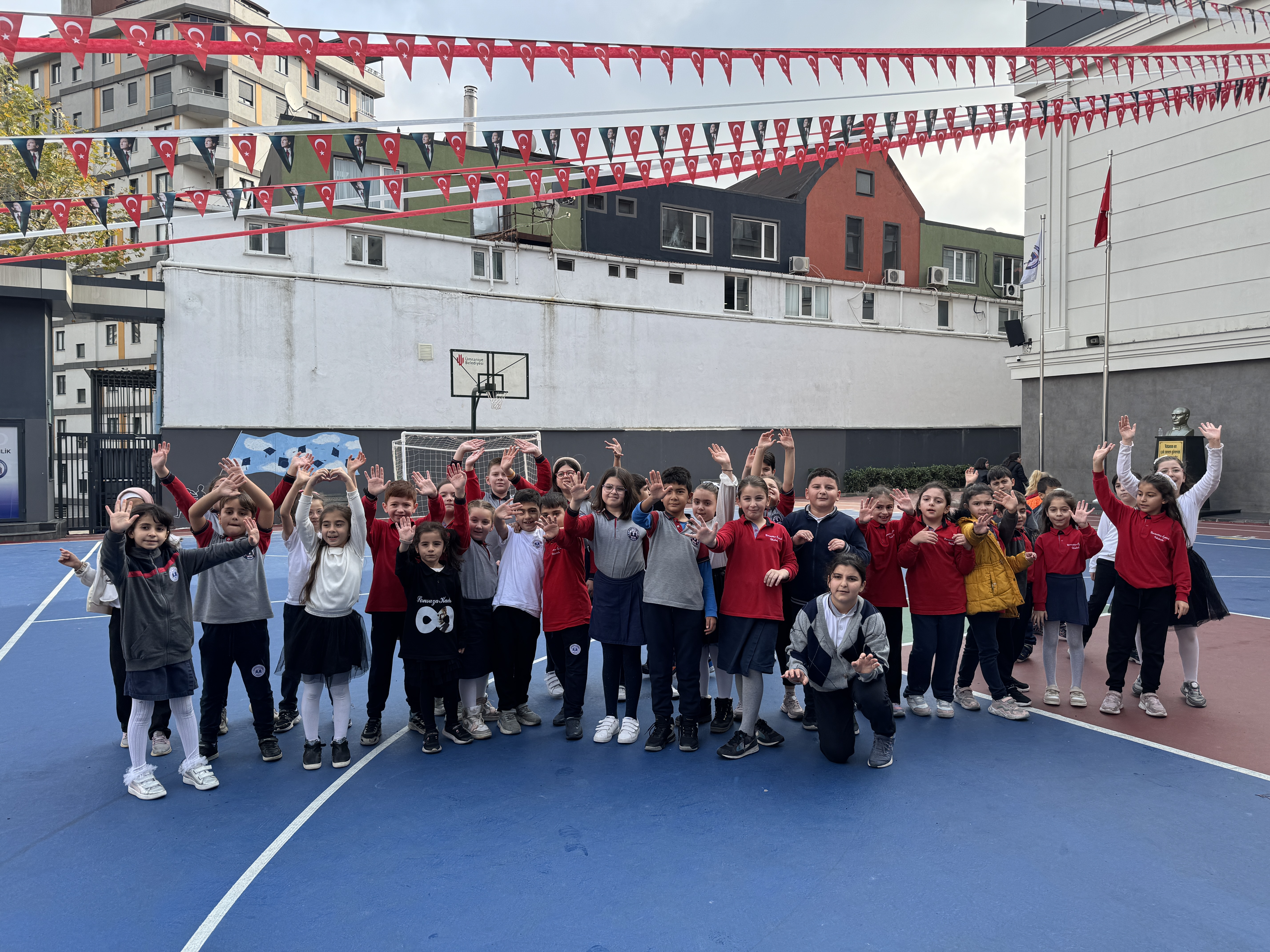 İstanbul'daki okullarda İstiklal Marşı'nın okunmasının ardından öğrenciler ara tatile başladı.