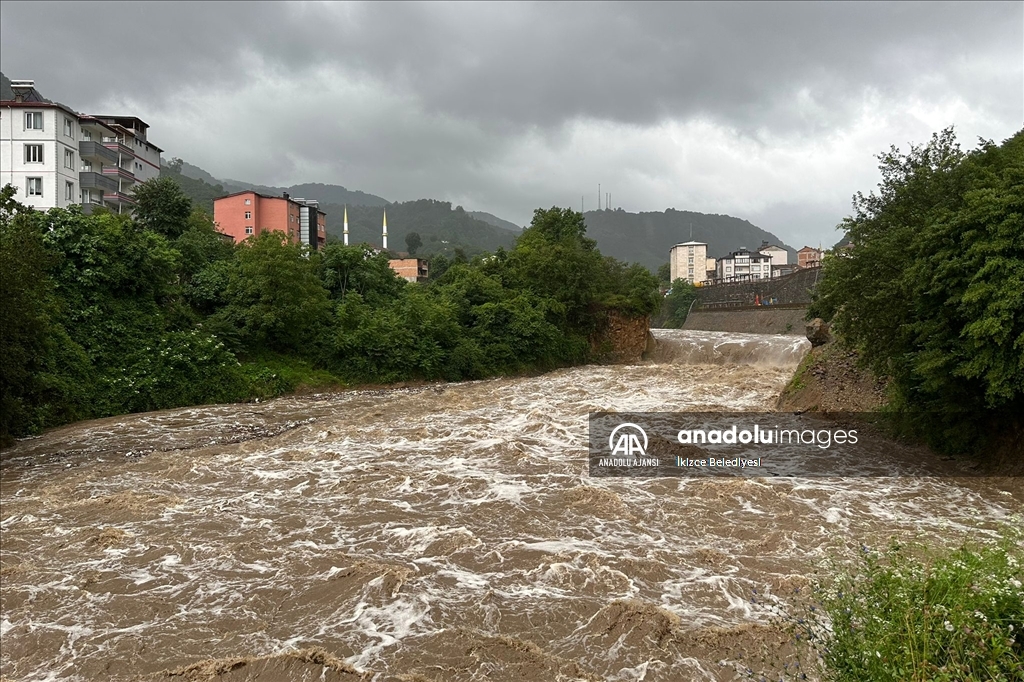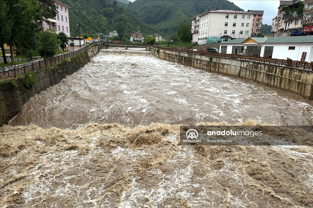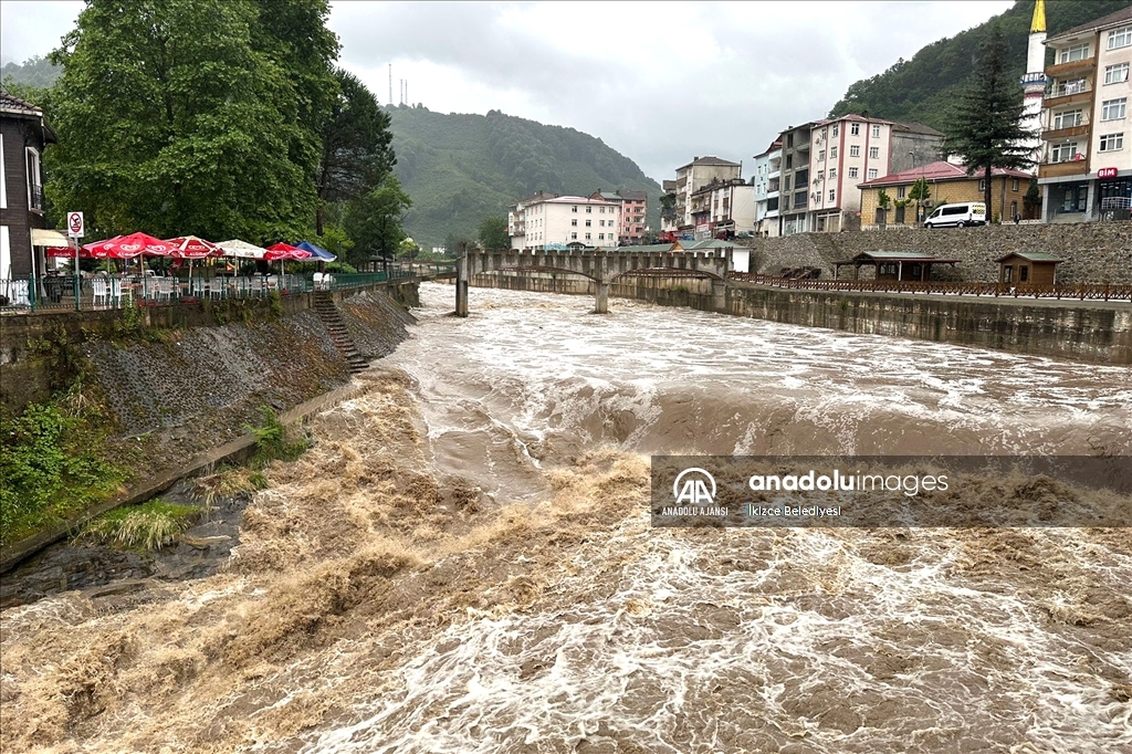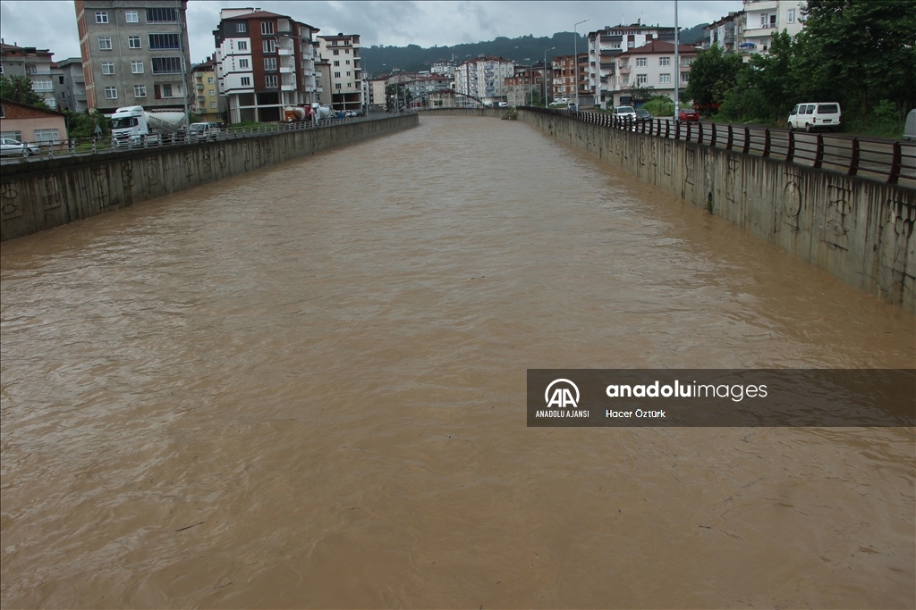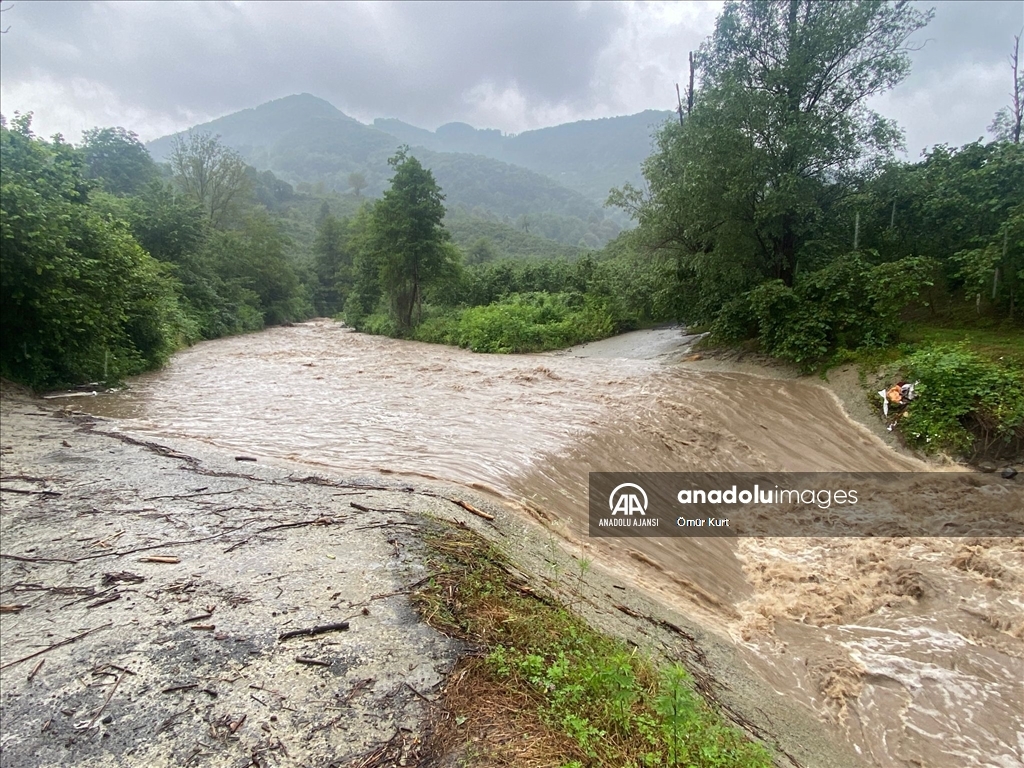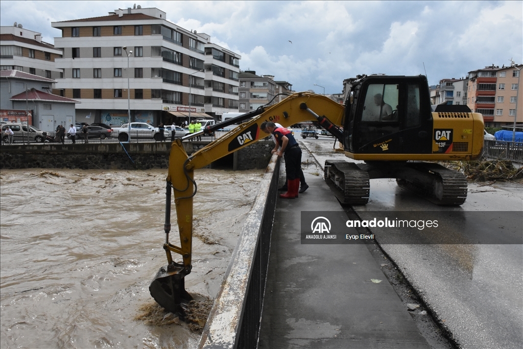 Dere üzerlerindeki köprülerde olumsuzluk riskine karşı Ünye Belediyesi ekipleri nöbet tutuyor.