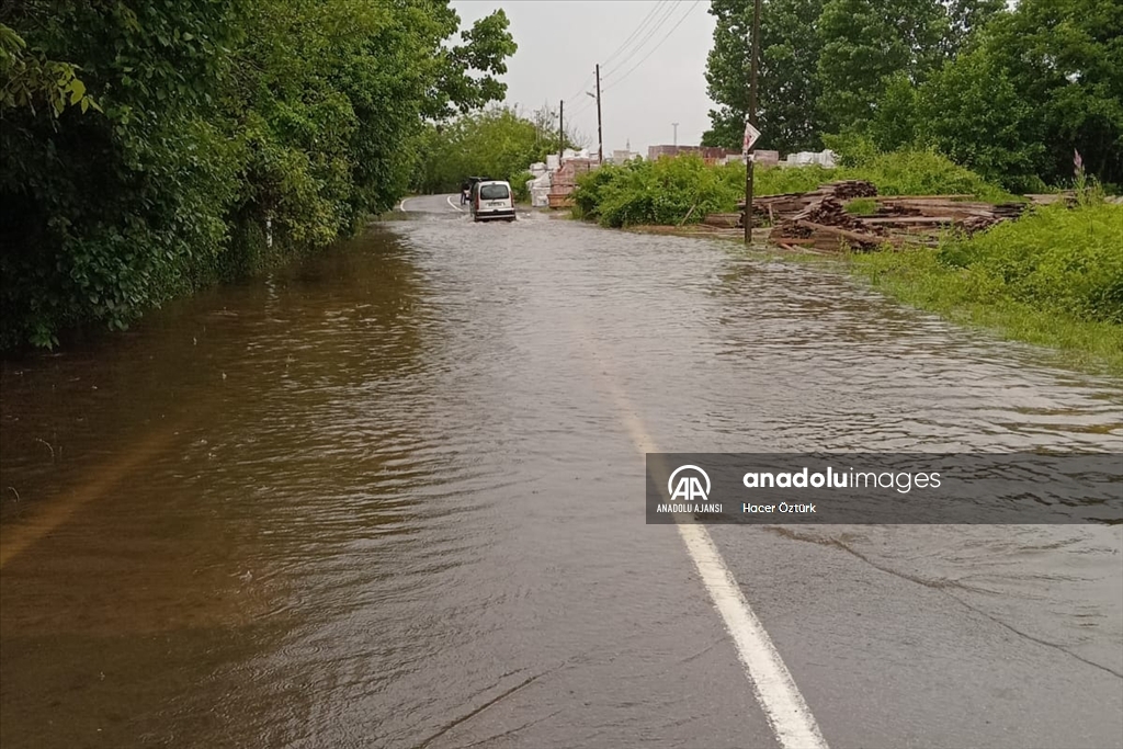 Çatalpınar Mahallesi'nde su birikintileri sebebiyle kapanan yollar, iş makineleriyle açıldı, Saylan Mahallesi'nde de ulaşımda aksama oldu.