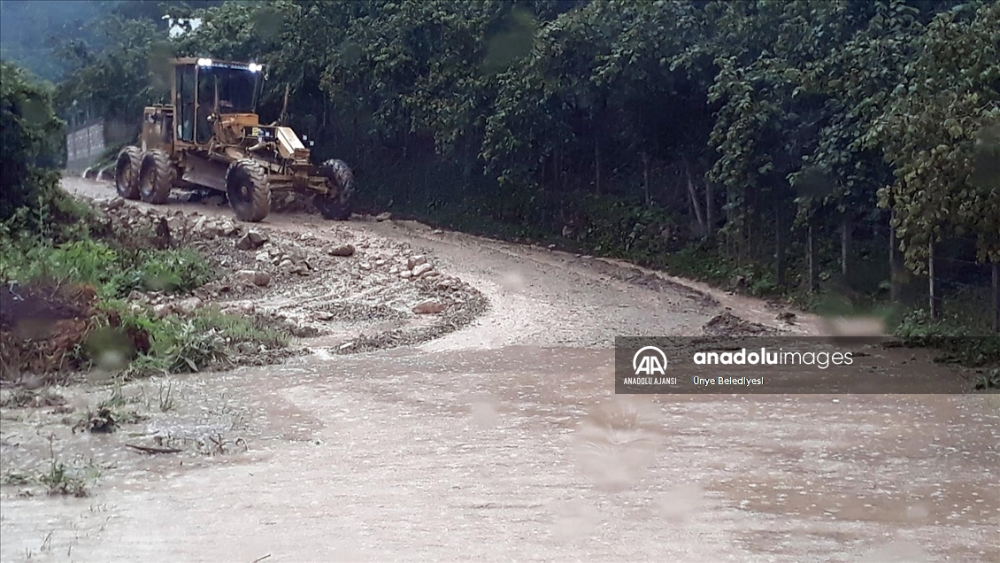 Ünye ilçesinde erken saatlerde etkili olan sağanak nedeniyle Ünye-Kumru yolu, Günpınarı Mahallesi mevkisinde trafiğe kapandı.