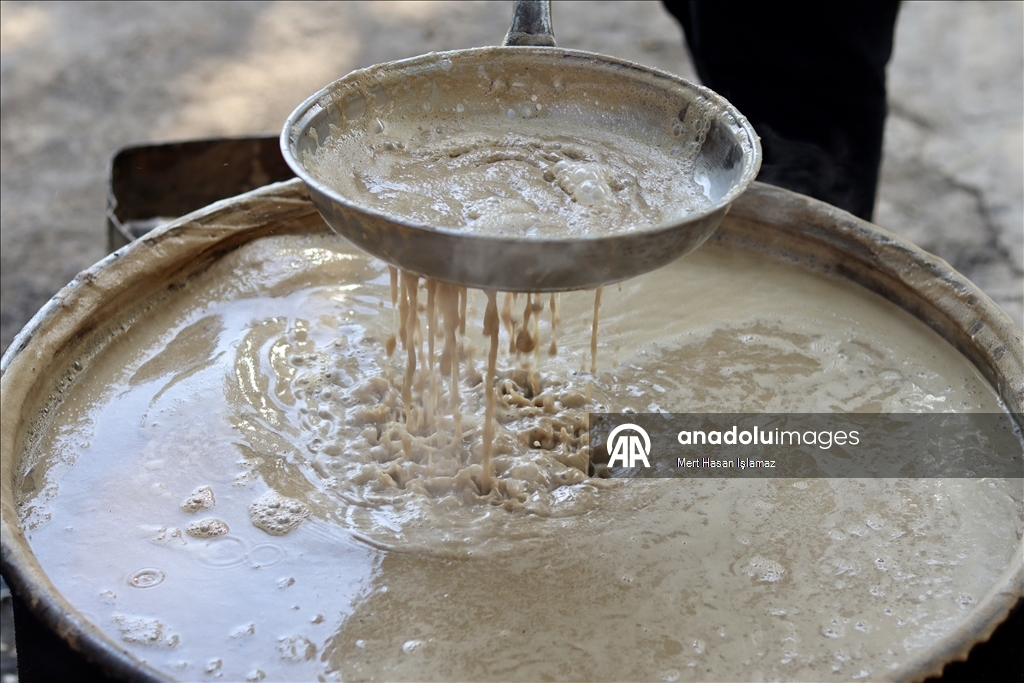 Çiftçilerden Sebahattin Demir de pekmezi imece usulü yaptıklarını ifade ederek, "Atalarımızdan bize miras kalan bu işi elimizden geldiğinde sürdürmeye çalışıyoruz. Pekmez geleneğini bizden sonraki nesillere aktarmaya devam edeceğiz." dedi.